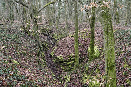 Hohlgang mit einer unvollendeten Grabenstreiche verbunden. Eine weitere