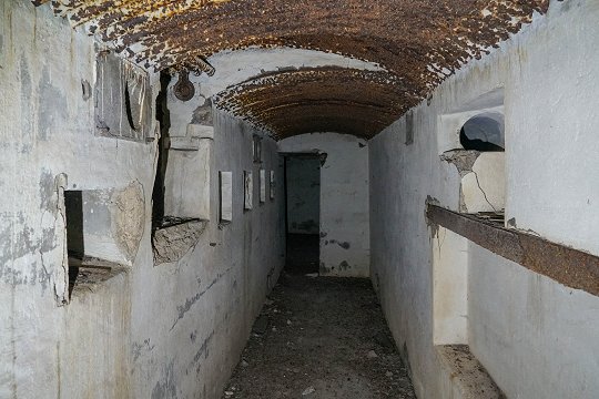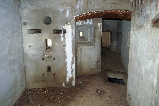 Suchscheinwerfer ausgestattet. Diese Kasematte ist durch einen Brunnen und einem