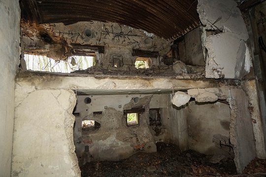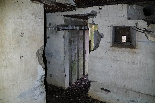 Kampfraum für 7,7cm Kanonen mit gesprengter Panzerplatte |