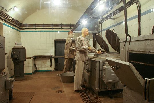 dicht an den Aufzug des Mannschaftseingang gebaut worden war. Mit vorsichtigem
