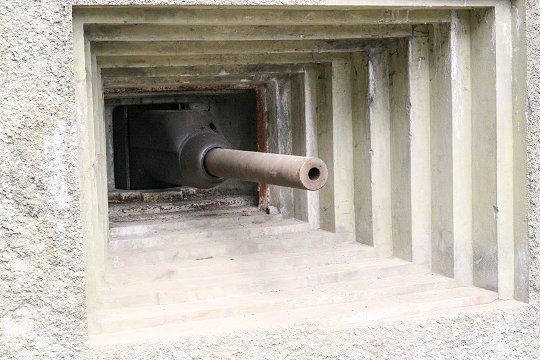 Block 4 Artilleriekasematte mit drei 75mm Geschützen Mle 32, nach Osten