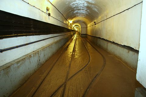 Besatzung geschoben werden. Aufgrund des Gefälles sind die Gleise mit einem