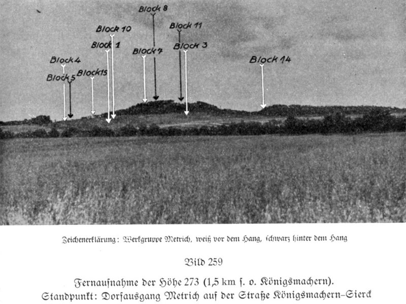 zwischen der Großgruppe Hackenberg und der Werkgruppe Billig das Zwischenwerk Hummersberg mit Flankierungsfeuer nach beiden Nachbarwerken, zwischen den Werkgruppen Billig und Metrich | |