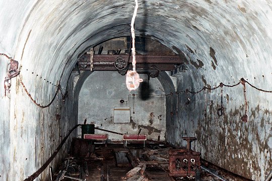 der Kommandostelle des Bauwerks, die sich etwa auf halber Höhe des