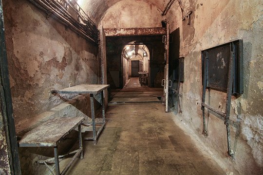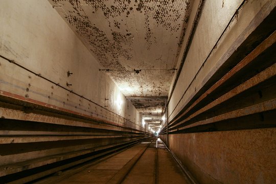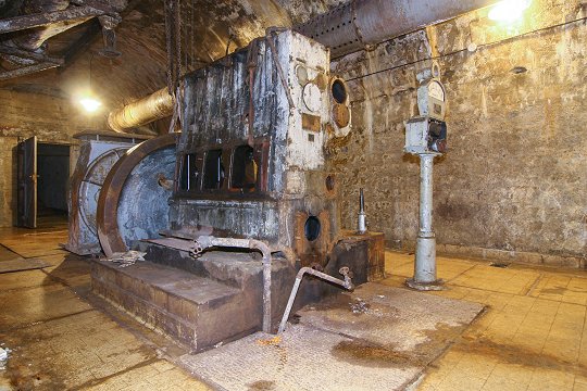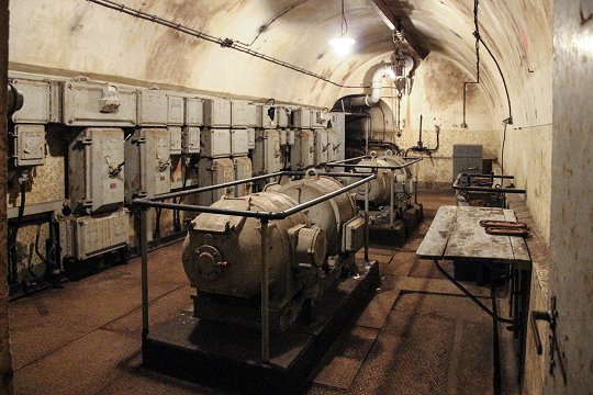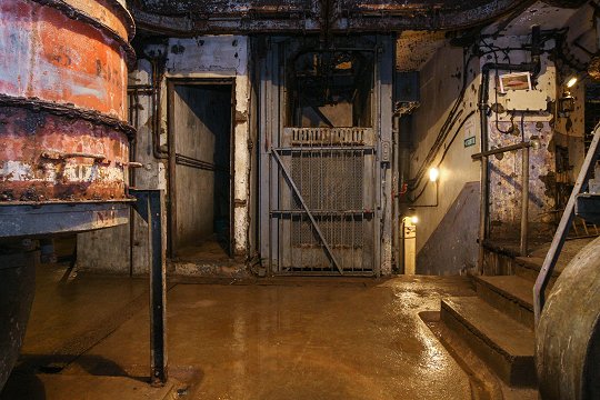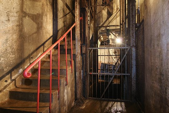 Treppenhaus mit Aufzug zum Geschützturm |