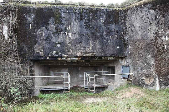 Block 5: Artilleriekasematte mit drei 7,5 cm Kanonen Modell 1929, einer 13,5 cm Haubitze, einer GFM-Panzerglocke Typ A für ein MG 24/29 und/oder einem 50 mm Granatwerfer und einer Panzerglocke für Granatwerfer (niemals ausgerüstet). | |