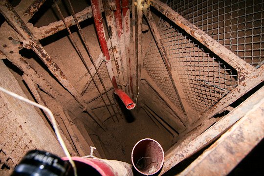 Block 9: Munitionsaufzug und Treppenschacht mit Sand verfüllt |