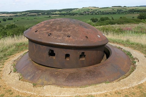 Der Versenkturm. Im Hintergrund die Ortschaft Fromy, von der die 8,8cm feuerte. |