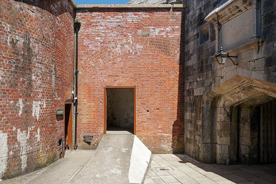 Links und Bildmitte Zugang zum Hauptmagazin, rechts Zugang zum Tudor-Castle |
