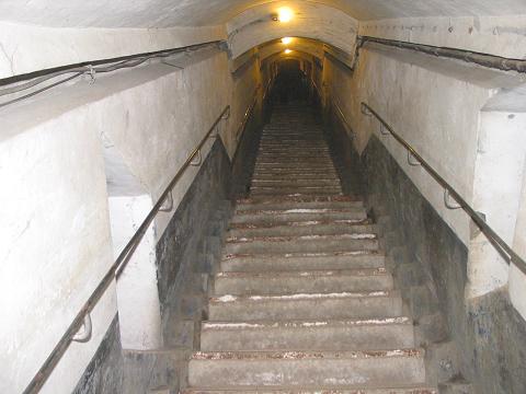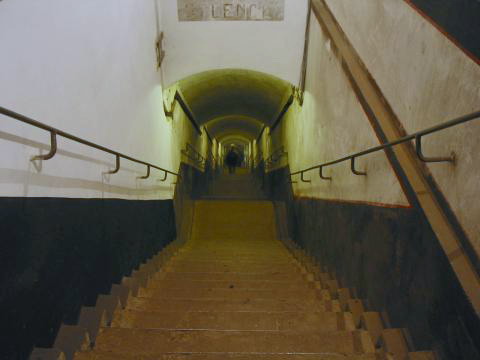 Blick nach unten: Treppe zur Galerie |