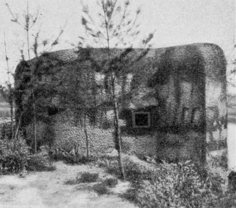 Strandverteidigungsanlage An der Kanalküste haben die Belgier eine Anzahl Kleinanlagen für Pak und MG zur Verteidigung des Strandes geschaffen. Sie sind in die Uferböschung eingebaut. Ihre kleinen Drehtürme heben sich gegen den Horizont wenig ab, weil Dünen sie meistens überragen. Ihre Baustärke ist gering, die unauffällige Lage und die Kleinheit des Bauwerkes sind ihr wirksamster Schutz. |