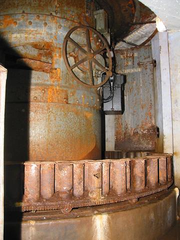 Die Panzertür zwischen Fahrstuhl und Geschützturm |