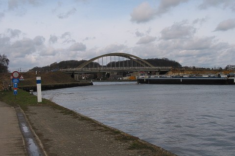 Der Albert-Kanal: links das Plateau mit Fort Eben-Emael |