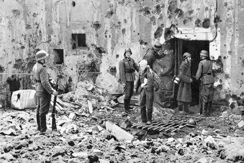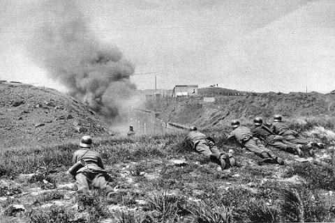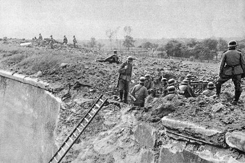 1940: Deutsche Soldaten am Festungsgraben |