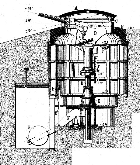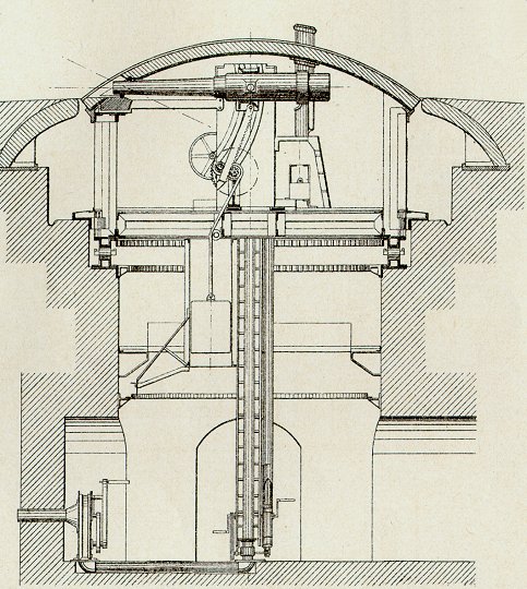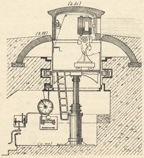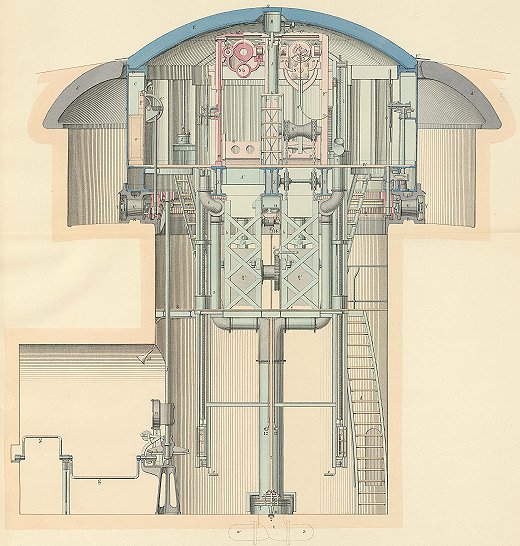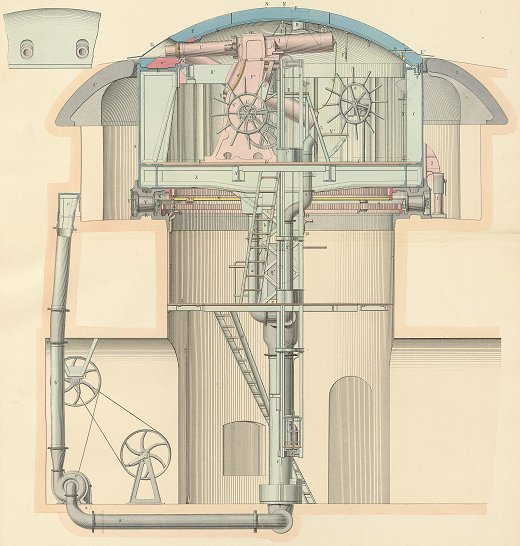 Panzerdrehturm für 12cm Geschütz (Längsschnitt) Quelle: Forges de Chantillon et Commentry - Coupoles et Curasses 1894 |