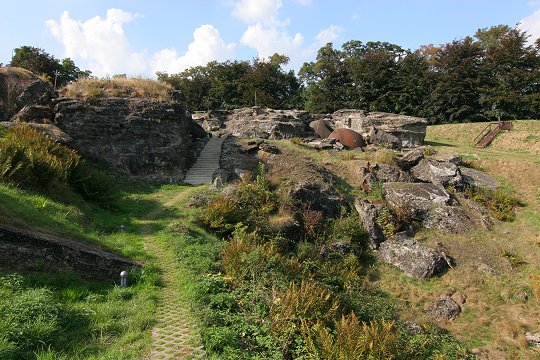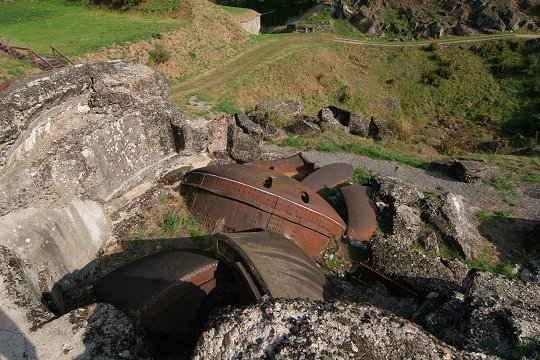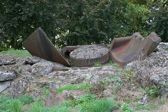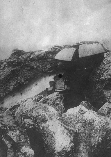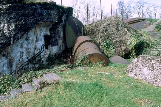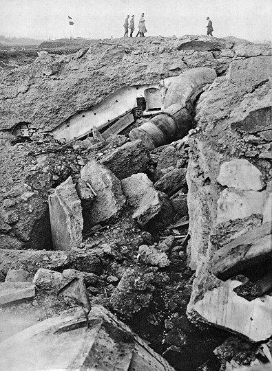 Der rechte zerstörte 21cm Gruson-Panzerturm |