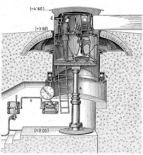Der zerstörte gepanzerte Suchscheinwerfer Quelle: Tricaud "Cours de Fortification - Fortification permanente" 1909 |