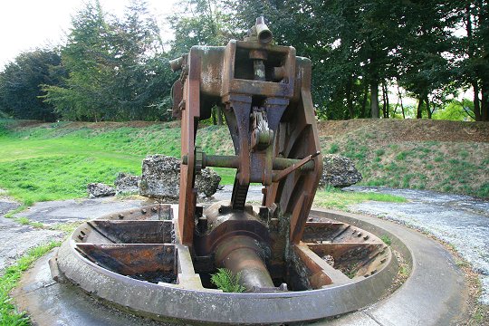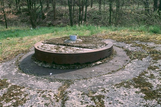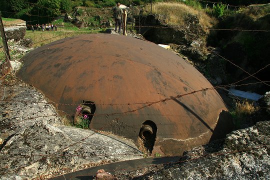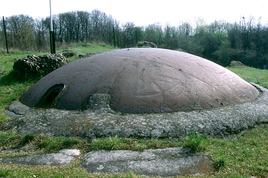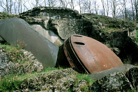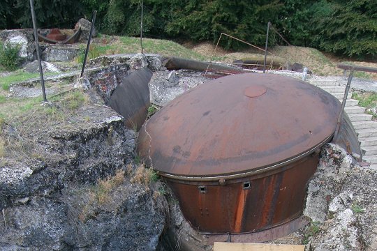 Der unzerstörte linke Chatillon-Commentry Panzerturm für 12cm Kanonen aufgenommen 2002 |
