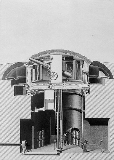 Skizze des Schneider-Creusot Panzerturm für 15cm Kanonen Quelle: von Schütz "Deutsche Panzerconstructionen und französische Nachahmungen" 1892 |