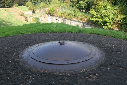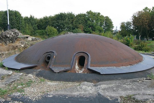 Der unzerstörte linke Chatillon-Commentry Panzerturm für 12cm Kanonen aufgenommen 2009 |