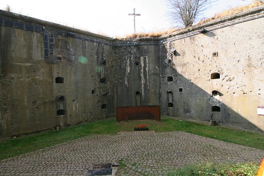 Somit war für das IX. AK der Weg frei, um westwärts marschierend die westlichen Forts anzugreifen. Am 15.08.1914 wurde dabei das Fort de Loncin mit schwerster Artillerie, darunter dem 42cm-Mörser, beschossen. Um 17.20 Uhr durchschlug eine der 810 kg schweren Granaten den Beton des Zentralmassivs und detonierte in der rechten Pulverkammer. Durch die Explosion der dort lagernden Munition wurde das Fort förmlich zerrissen und fast vollständig zerstört. Von der 550 Mann starken Besatzung kamen 350 ums Leben. Der Festung und dem Militärgouverneur von Lüttich, General Leman, blieben nur noch die Kapitulation.Unter den Trümmern dieser Gedenkstätte liegen bis heute die sterblichen Überreste von 350 Besatzungssoldaten.