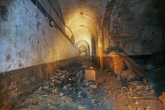 Gefechtsgang in der Kehlkaserne mit Trümmern |