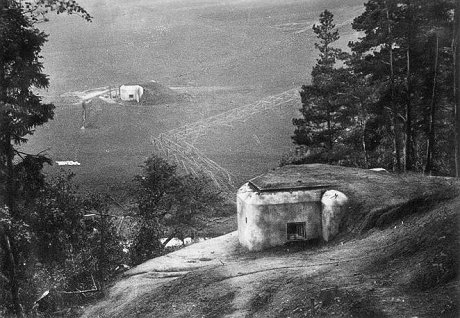 Im Jahre 1936 wurde bereits mit der Verstärkung der ersten Verteidigungslinie durch den Bau der mittleren MG-Schartenstände begonnen. Diese sind allgemein als "Ohrenstände" bekannt.