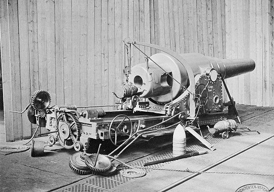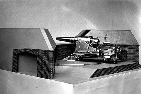Modellanlage der Fa. Krupp einer 28cm Ringkanone in hoher Küstenlafette |
