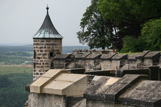 Seit dem 17. Jahrhundert gehörte der Königstein zu den Hauptfestungen Sachsens. Ernsthaft belagert wurde der Königstein nie. Mit dem raschen Fortschreiten der Militärtechnik verlor er gegen Ende des 19. Jahrhunderts seine militärische Bedeutung. In Kriegszeiten, aber auch während der Revolution im Mai 1849 suchte die sächsische Königsfamilie hinter den Mauern Zuflucht. Wiederholt wurden die Dresdner Kunstschätze und Archive in seinen Kasematten in Sicherheit gebracht. Während des zweiten Weltkrieges überdauerten hier die Bestände des "Grünen Gewölbes" und andere Teile der weltberühmten Sammlungen die Zerstörung durch anglo-amerikanische Bomber.