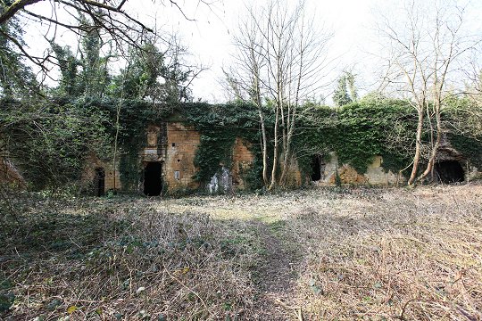 Panzerbatterie für zwei kurze 10cm Geschütze und eine betonierte Kaserne mit