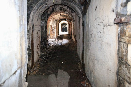 Obergeschoß sind Unterkunftskasematten für die Mannschaften angelegt, in der