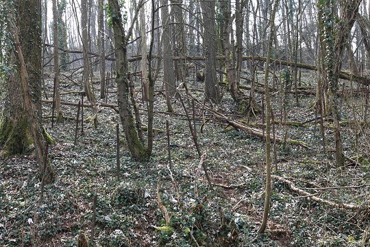 durch eine doppelte Grabenstreiche und fünf einfache Grabenstreichen gesichert.