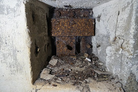 Kampfraum für 7,7cm Kanonen mit gesprengter Panzerplatte |