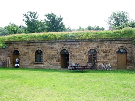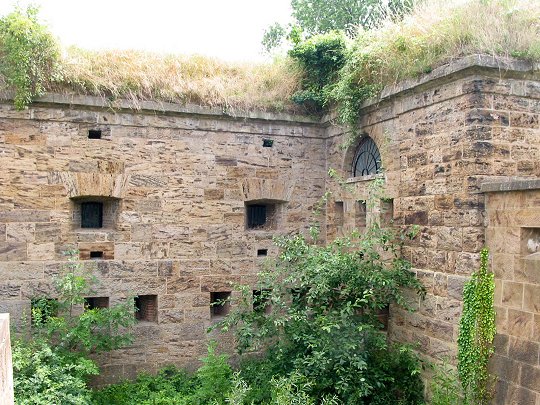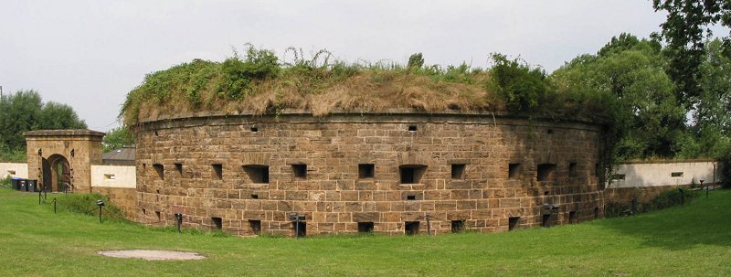 Nach den Napoleonischen Kriegen wurden überall wieder Fortifikationsbauten zur Sicherung benötigt. Hierbei entwickelte sich im deutschen Bereich die sogenannte neudeutsche Manier. Hier wurden alle Werke der Feindsicht durch entsprechende Wälle entzogen. Ziel war es, überlegenes Feuer dem Feind frontal und flankierend entgegenzustellen. Vor dem polygonalen Wall lag die Hauptgrabenkaponniere mit ihrem hufeisenförmigen Grundriss. Sie übernahm, meist doppelstöckig gebaut, die Grabenbestreichung und war ihrerseits durch kleine Streichen geschützt. Der Hauptgrabenkaponniere vorgeschoben lag eine Bastion die, mit Mörserbatterien bestückt, das Vorder- und Seitengelände unter Feuer halten sollte.