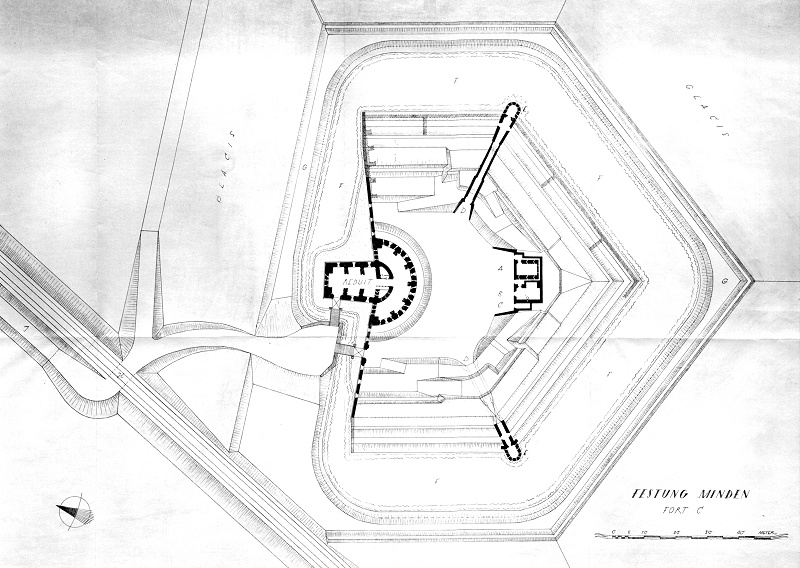 Mit der Fertigstellung der Köln-Mindener Eisenbahnlinie und der Errichtung des Mindener Bahnhofs im Jahre 1847 entstand für das preußische Militär das Problem, dass sich nun der wichtige Bahnhof außerhalb der Stadtbefestigungsanlagen befand. Der Bahnhof selbst, vor den Toren der Stadt gelegen, musste unbedingt befestigt werden. So entstand die Bahnhofsfestung, die zum Schutz gegen das benachbarte nicht preußische Königreich Hannover gebaut wurde. Mittelpunkt dieser Festung war der Bahnhof, in dem die Köln-Mindener Eisenbahnstrecke endete und die Bahnstrecke Minden-Hannover begann. Da jede Bahnstrecke von einer anderen Bahngesellschaft war, mussten die Reisenden im Bahnhof Zoll bezahlen. Zur Weser hin war die Festung durch die Flankenbatterie geschützt und nach Norden durch das Fort A. Im Osten war es vom Fort B gesichert, die beiden Forts schützen das zwischen ihnen liegende Magdeburger Eisenbahntor. Unterhalb des Fort B lag das Berliner Tor. Nach Süden hin lag das Kölner Tor, das durch das im Süden liegende Fort C geschützt wurde. Die Forts A und B waren direkt in die Festungsmauern eingebaut.