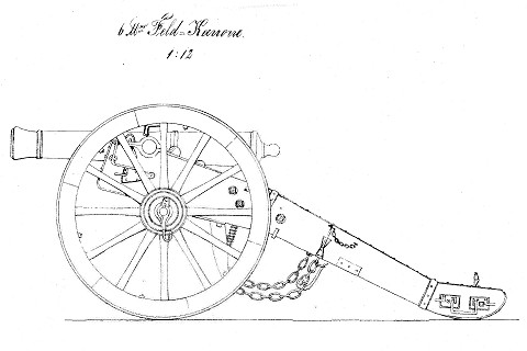 6pfünder Feldkanone Quelle: Vetter "Artillerie-Material der Festung Ulm" 1868 |