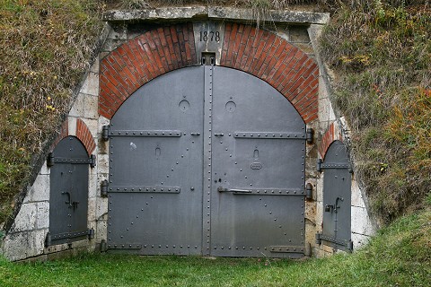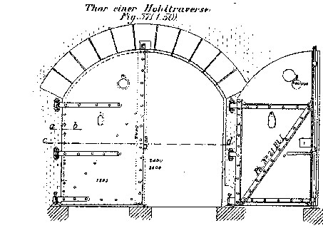Zweiflügeliges Tor einer Hohltraverse Quelle: Wagner "Fortificatorischer Atlas" 1876 |