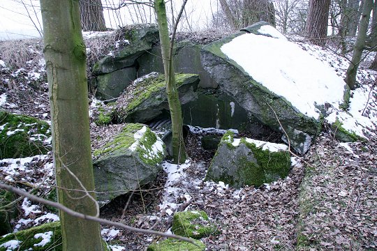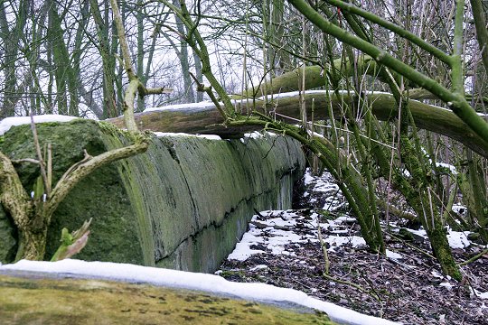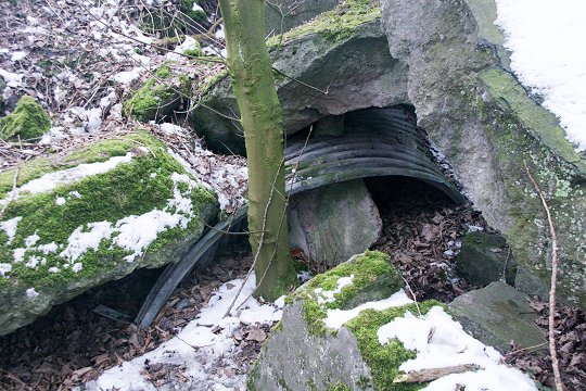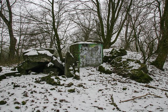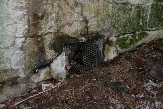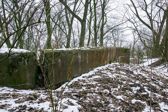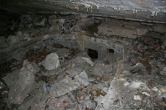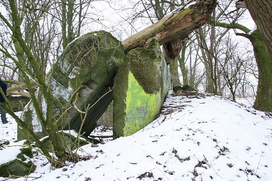 Zerstörte MG-Kasematte im Wall |