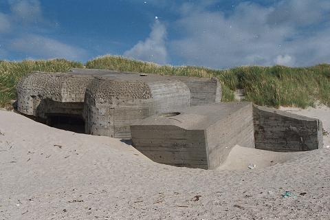 Die Festungspioniere hinterließen ein Versuchsgelände für Bunkerbauwerke. Nördlich vom Blaavandshuk unternahm man Versuche, um die verschiedensten Geschütztypen in Ringstände und Kasematten einzubauen. Interessant muten diejenigen Versuchsbauten an, die zumeist eine vollständige Schartenfront, aber nur sparsam betonierte Rumpfteile erhielten. So ist heute noch eine Scharte einer Kasematte für 15cm Seezielgeschütz (ähnlich eines M 176) und der eines Pak-Schartenstandes (ähnlich einem R 680) erhalten. Weiterhin findet man noch andere Versuchs-Ringstände.
