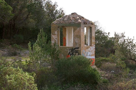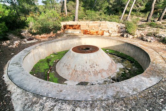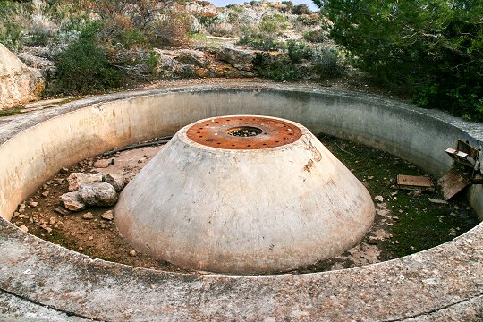 Die Ringbettungen hinterlassen beim Betrachten einen modernen Eindruck, so dass diese sicherlich nicht aus dem Jahre 1936 stammen dürften. Wahrscheinlicher ist, dass diese Batterie eine erhebliche Modernisierung nach dem 2. Weltkrieg erfahren haben dürfte. Wesentliches Merkmal dieser Seezielbatterie ist ihr unterirdisches Hohlgangsystem. Der Eingang zum Hohlgang ist gut in einem als Hütte getarnten Gebäude versteckt. Unterirdisch führt der Hohlgang zu den Munitionsmagazinen, zur Energieversorgung und zum Peilstand. Unterirdische Kasernen sind jedoch nicht vorhanden, jedoch können die offenen Geschützstellungen über Steigeisen aus dem Hohlgang erreicht werden. Die Kasernen selbst sind im Piniengelände weiträumig verstreut.