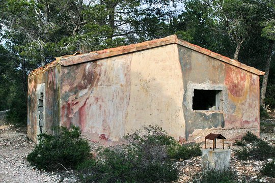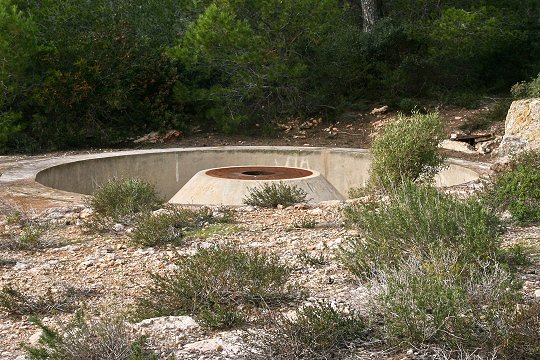 Über die Batterie Banco de Ibiza (E-1) ist nur sehr wenig bekannt. Im Jahre 1936 sollen hier während der Abessinien-Krise drei Küstengeschütze vom Typ Gonzales Rueda Modell 1902 aufgestellt worden sein. Diese Geschütze, Lizenzbauten der französischen Firma Schneider & Cie. waren ursprünglich auf den spanischen Kreuzern der Reina Regente-Klasse (Reina Regente, Alphonso XIII und Lepanto) eingesetzt, welche 1910 erbaut und 1926 aus der aktiven Liste gestrichen wurden. Nach Außerdienststellung der Schiffe fanden die Rohre der Artillerie weitere Verwendung in verschiedenen Seezielbatterien. Die Geschütze besaßen eine Rohrlänge von 7.500 mm, ein Projektilgewicht von 45 kg und eine Reichweite von 19.350 Metern. Höchste Feuerkadenz waren fünf Schuss pro Minute.