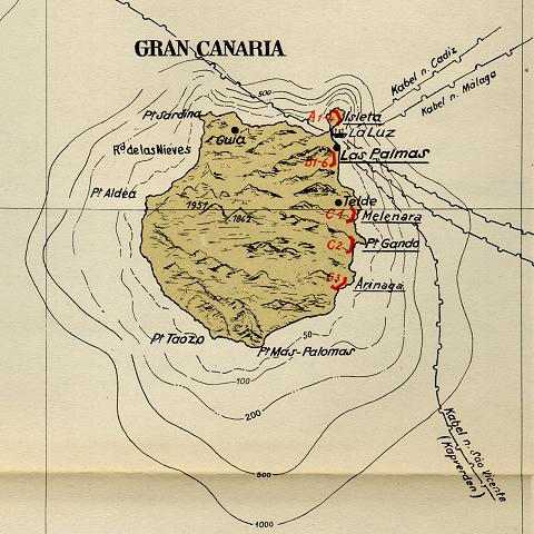 Nach den Erkenntnisse des Oberkommandos der Kriegsmarine waren auf den Kanaren folgende Batterien vorhanden: