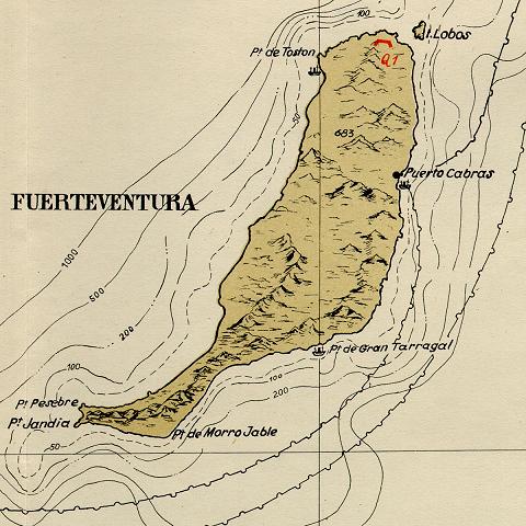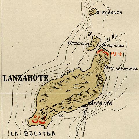 Landungsabwehr durch acht 76mm Geschütze bei La Bocaina, Punta Jandia und verschiedenen Buchten |