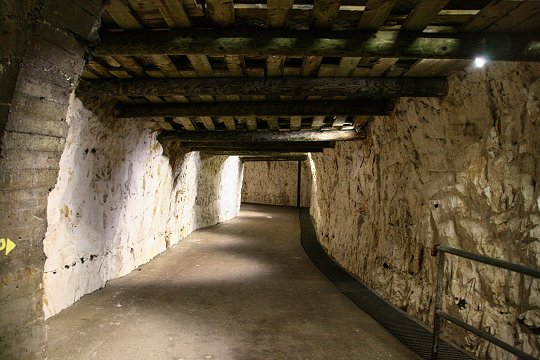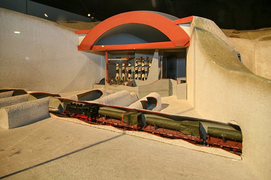 Nach der Entdeckung der Bunkeranlage durch die alliierte Luftaufklärung wurde die Baustelle am 27. August 1943 zum ersten Mal bombardiert. Weitere Bombardierungen erfolgten im September 1943 die zwar an der Kuppel selbst keine Schäden verursachten, jedoch die anderen Bereiche der Baustelle verwüsteten. Aufgrund der akuten Bedrohung aus der Luft, die Anlage war ja nun enttarnt, beschloß man seitens der Organisation Todt sich auf den Hauptbunker zu konzentrieren. Da das Verschießen von V2-Raketen aus einem Bunker nicht mehr in Frage kam, sollte in dem kuppelförmigen Bauwerk eine Produktionsanlage für flüssigen Sauerstoff errichtet werden. Diese hätte es ermöglicht, mobile Abschußrampen frontnah mit dem notwendigen Raketentreibstoff zu versorgen. Die Sauerstoffproduktionsanlage war im Januar 1944 fertig gestellt. Zu einer größeren Sauerstoffproduktion ist es jedoch nicht mehr gekommen, da Luftangriffe die Aufnahme der Produktion behinderten. Die schwersten Angriffe fanden am 19.6. und 27.7.1944 mit den schwersten Bomben der Alliierten statt, der fast sechs Tonnen schweren Tallboy. Die Kuppel wurde zwar von einer Tallboy getroffen, jedoch nicht durchschlagen. Am 6.9.1944 eroberten alliierte Truppen die Bunkeranlage. Seit 1985 steht die Anlage unter Denkmalschutz und ist heute museal ausgebaut.