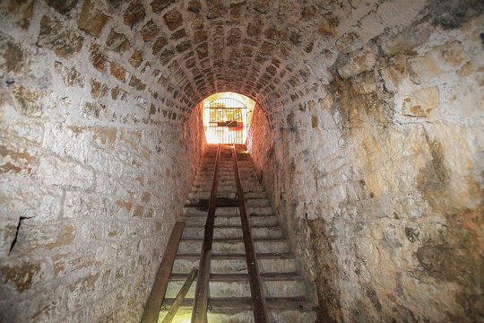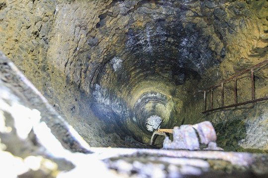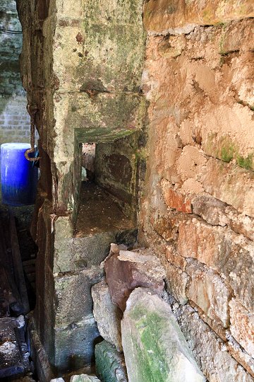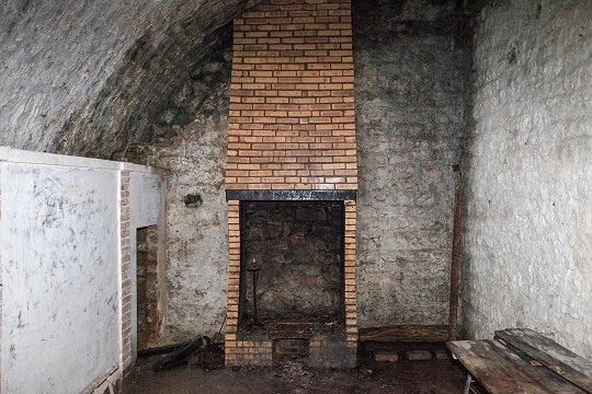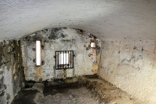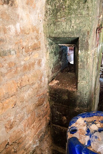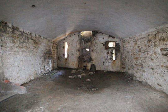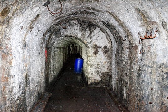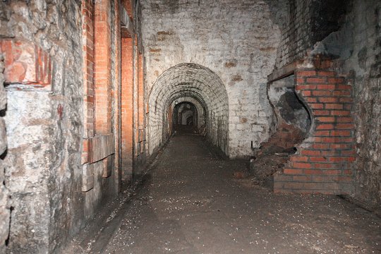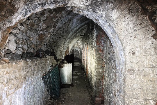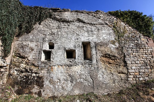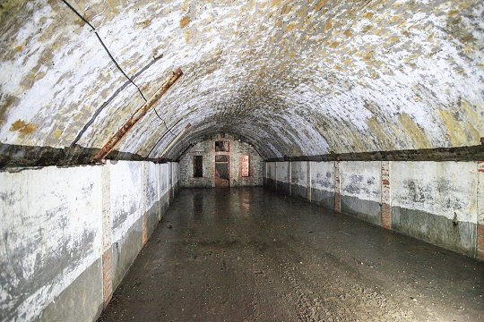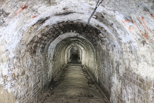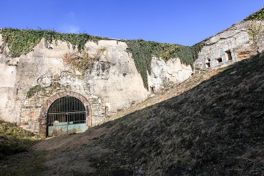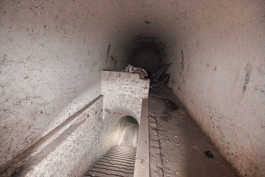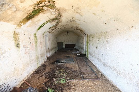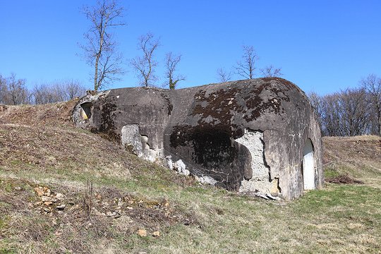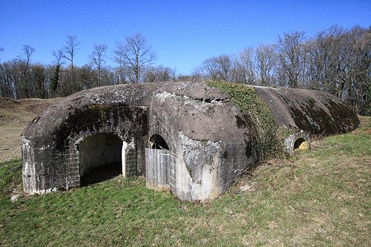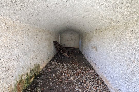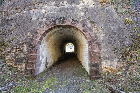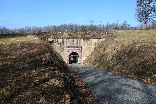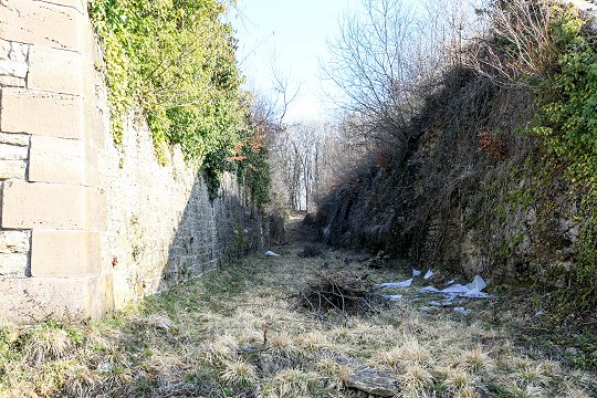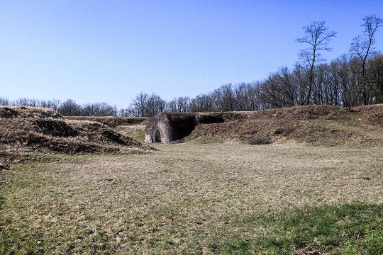 Blick auf eine betonierte Hohltraverse und die Wälle |
