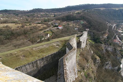 zwischen 1675 und 1695 werden die Befestigungsanlagen entlang der Flußschleife beim Stadtteil Battant erneuert, |