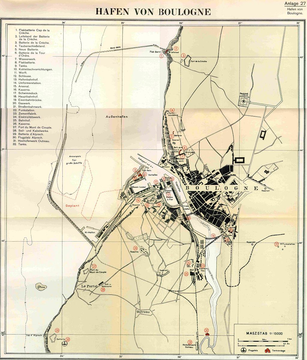 Boulogne ist gegen Angriffe von See her wie auch aus der Luft verhältnismässig stark geschützt. Die Batterie de la Crèche, 2,3 km nordöstlich der Hafeneinfahrt, dicht an der Küste gelegen, ist mit vier 28cm Geschützen hinter Schutzschilden bestückt. Die Reichweite der Geschütze wird mit 35 bis 40 km angegeben. Hinter der Batterie stehen vier 7,5cm Flak in ortsfester Lafette. Der Leitstand sowie ein E-Messgerät stehen dicht oberhalb des Kaps. Dort befindet sich auch eine weitere Flakbatterie von drei 7,5cm Geschützen in ortsfester Lafette.