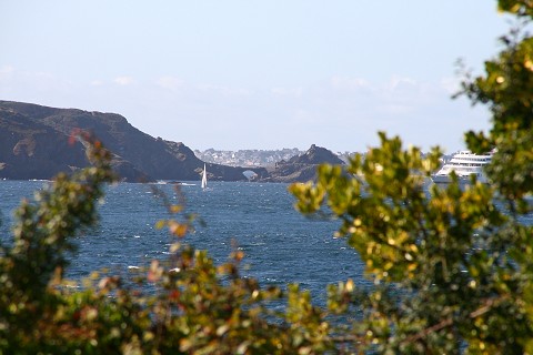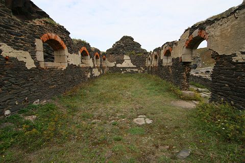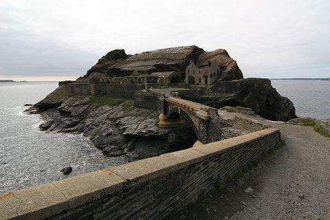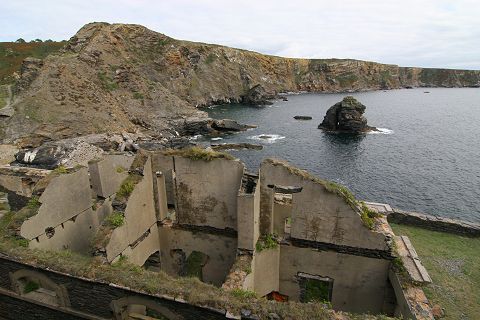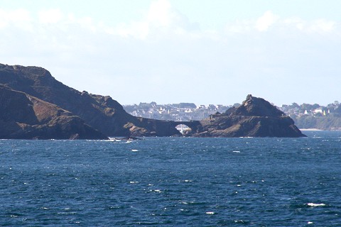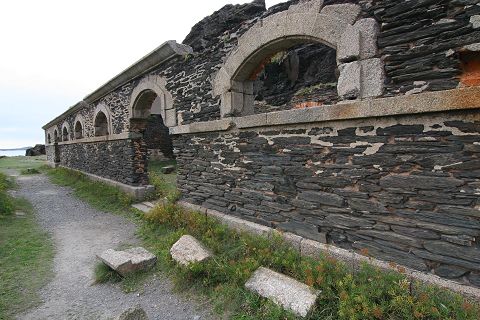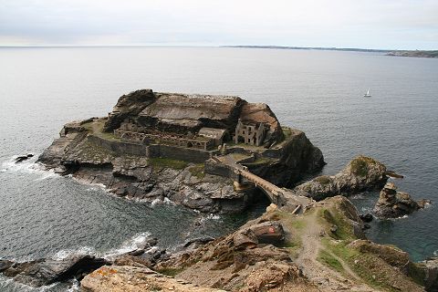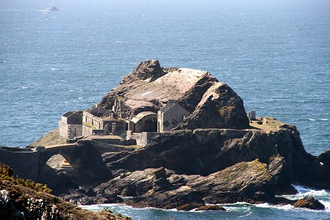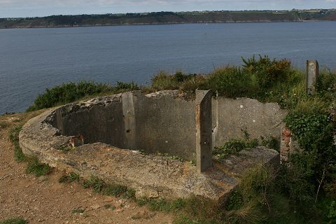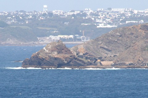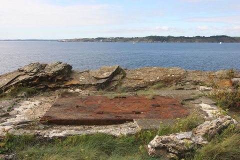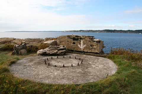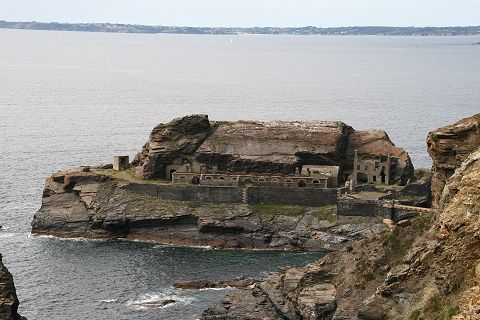 Die kleine Batterie de Capucins befindet sich gegenüber von Brest auf der Halbinsel Crozon. Zusammen mit etlichen anderen Batterien und Festungsanlagen schützte sie die Reede von Brest. Schon der französische Festungsbaumeister Vauban wollte 1694 die kleine Insel befestigen, allerdings reichten die finanzielle Möglichkeiten nicht aus. Erst ab 1846 wurde erneut die Idee einer Batterie aufgegriffen und es entstand bis 1848 die Kaserne und eine kleine Batterie auf der Seeseite. Die Kaserne ist feindlichem Beschuß durch die Höhe des Felsens völlig entzogen. Erst 1861 erbauten die Pioniere die Steinbrücke zum Festland, so dass eine Verbindung zur kleinen Insel entstand. Bis 1888 trieb man zwei Kavernen in den Fels, aus denen dann zwei Geschützkasematten entstanden. Hier wurden zwei Kanonen (Canon de M 32C) mit einem Kaliber von 32cm aufgestellt. Ab 1890 bestückte man die seeseitige Batterie mit vier 47mm Kanonen. An dieser Stelle trieb man ebenfalls eine Kaverne für einen 150cm Scheinwerfer in den Fels. Über eine Treppe ist dieser Schweinwerferstand zu erreichen. Ein weiterer 150cm Scheinwerfer ist auf der linken Seite der Batterie aufgestellt gewesen. Heute ist nur noch das Haus seiner Unterbringung übrig. Für die Versorgung mit Elektrizität errichtete man 1909 ein halbrundes Generatorgebäude. Der Feuerleitstand der Batterie ist oberhalb der Felskante eingebaut. Ein Fangdamm mit Graben und Tor mit Zugbrücke schützten die Batterie zur Landseite hin.