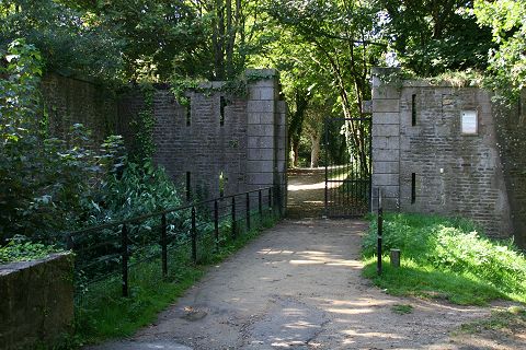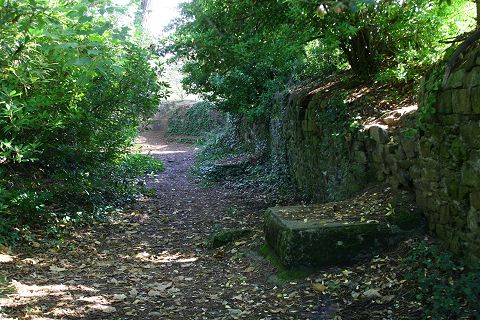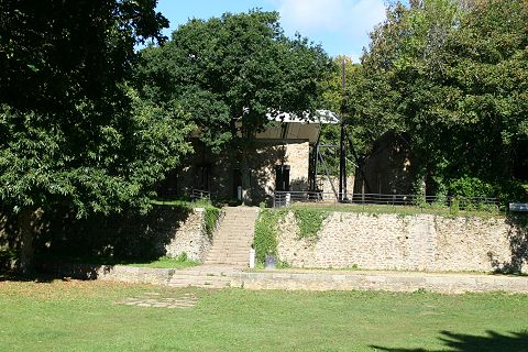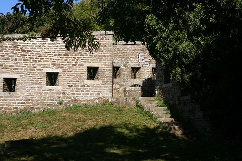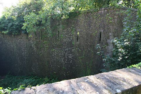 Der Graben mit der krenelierten Mauer |