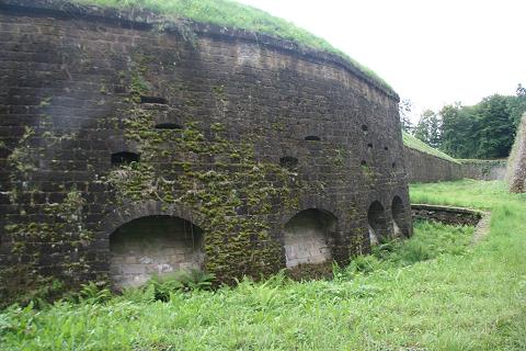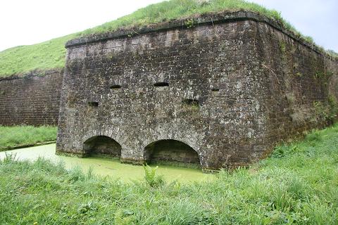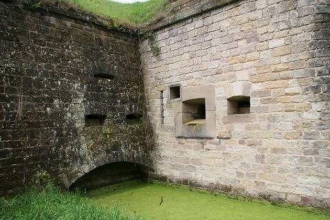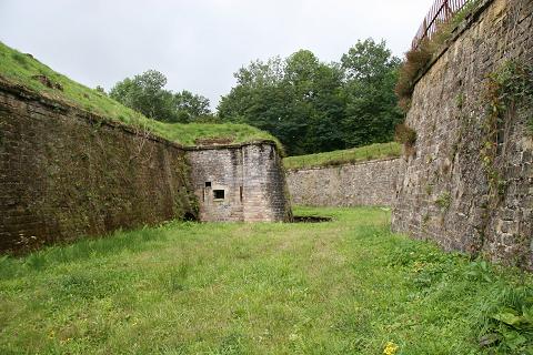 Blick vom Graben auf die doppelte Grabenstreiche |